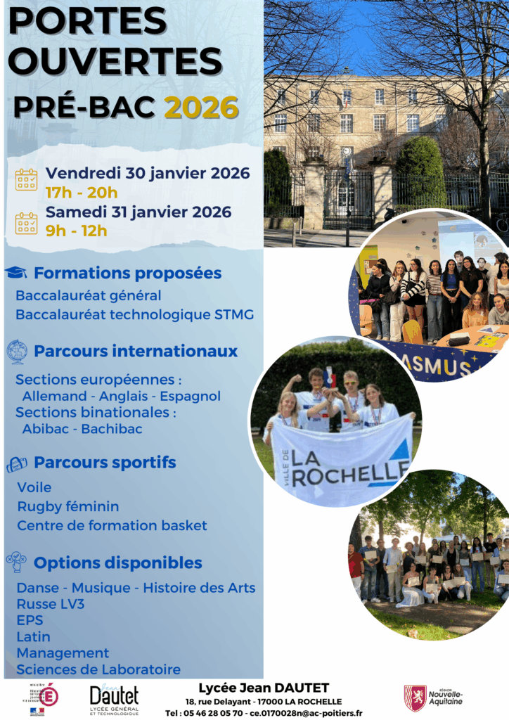 Portes ouvertes du lycée Jean Dautet : 30 Janvier 17h00 à 20h00 et 31 janvier 9h00 à 12h00